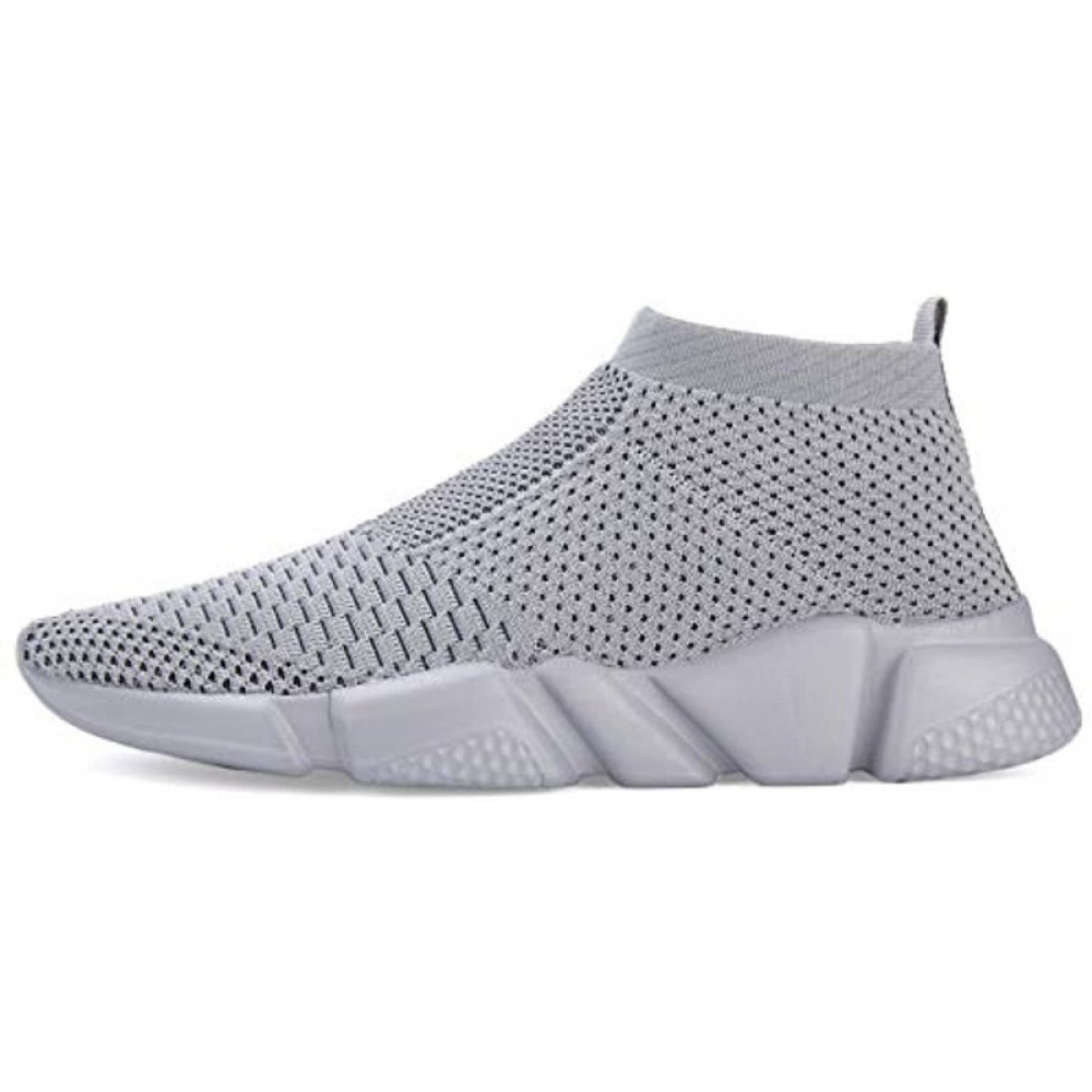 Men's Running Shoes Breathable Knit Slip On Sneakers Lightweight Athletic Shoes Casual Sports Shoes All Grey